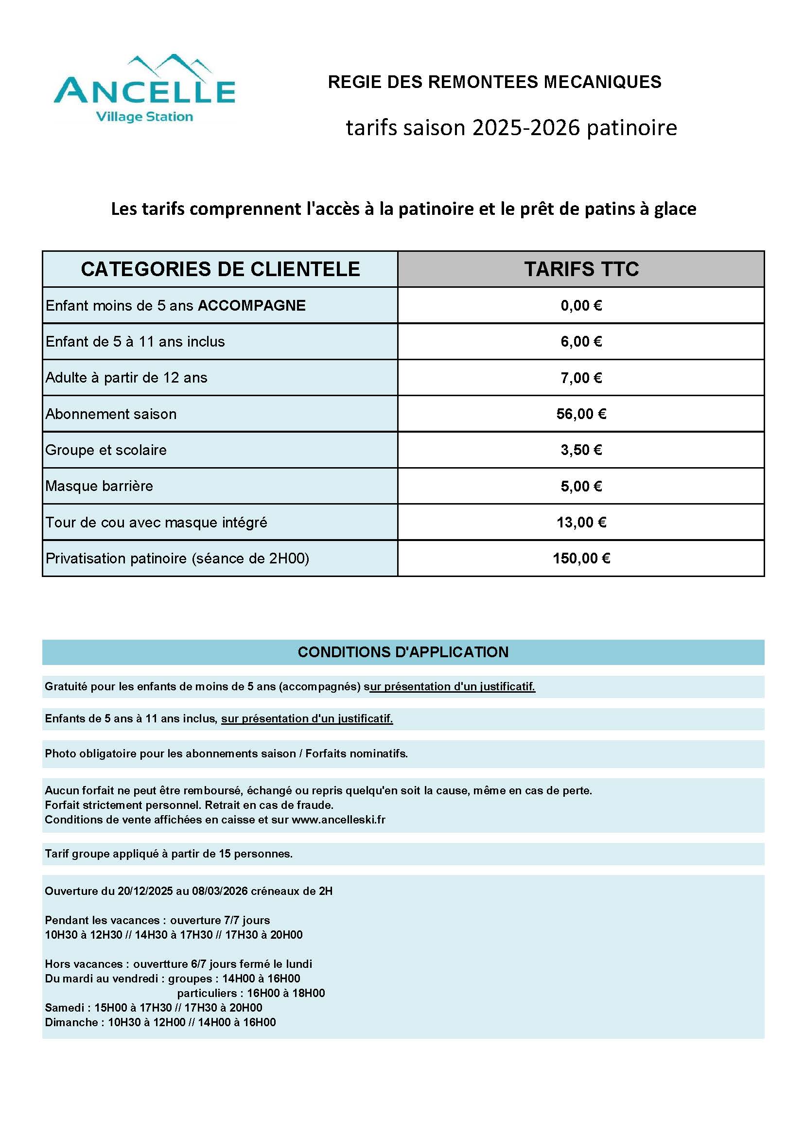 Patinoire de plein air de 300m2 installée au cœur du village.